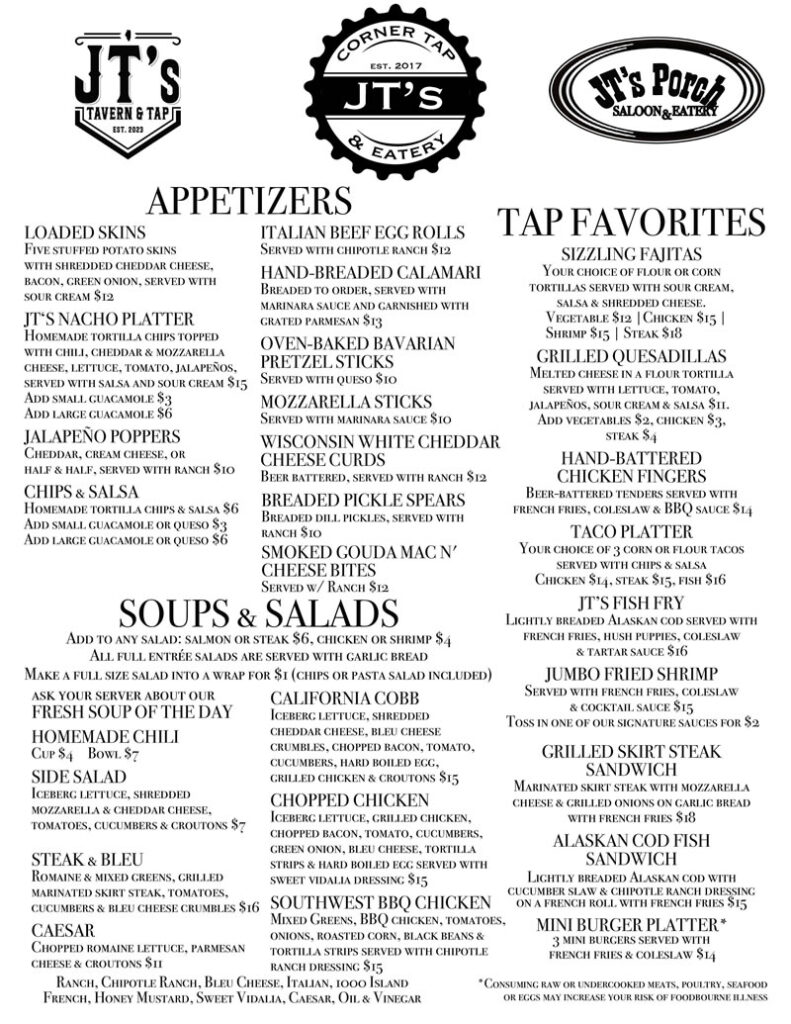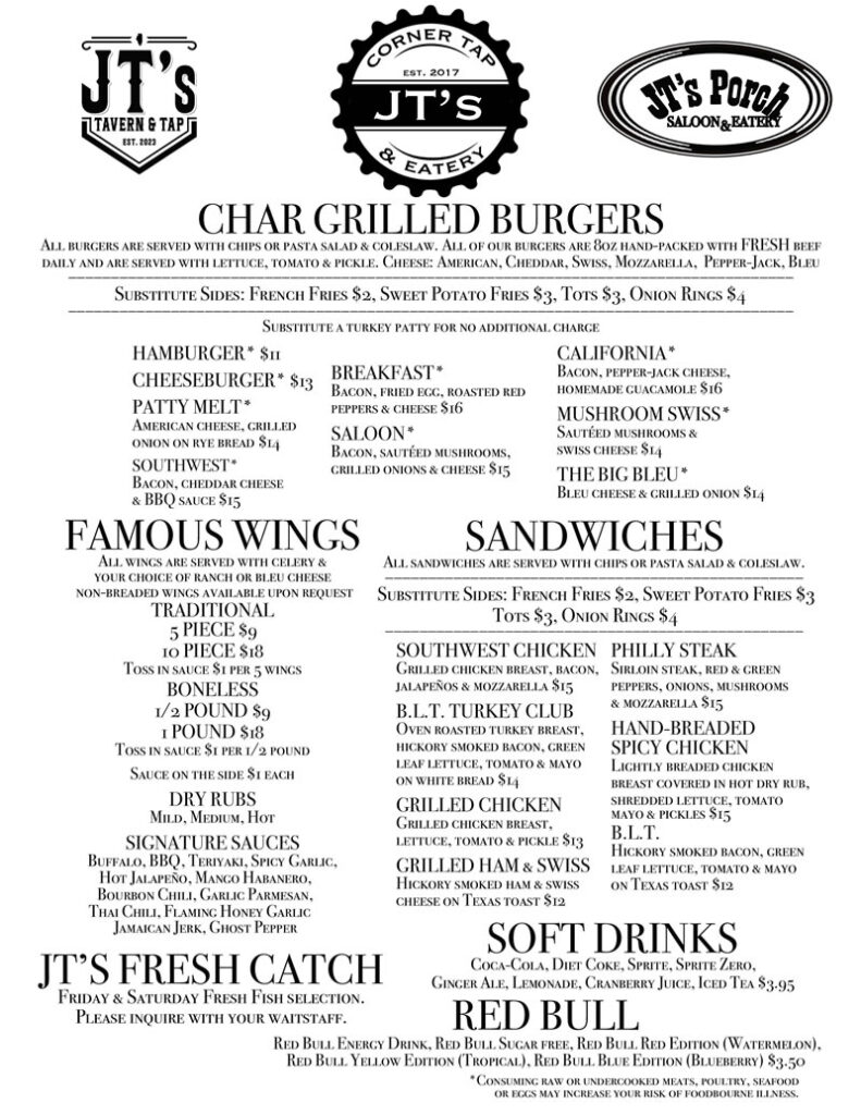 At JT’s Corner Tap & Eatery we pride ourselves in having the best wings around! Our wings are bigger and better than all the competition. Whether you like Mild or Extra hit we have a style and sauce for you!